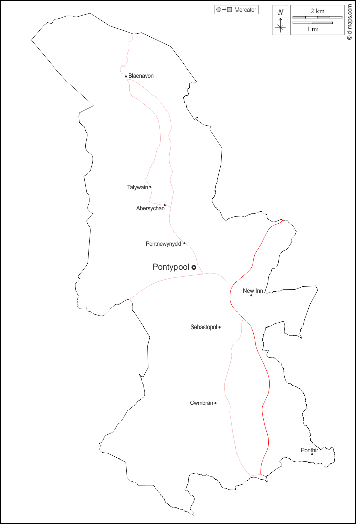 d-maps > यूरोप > युनाइटेड किंगडम > साउथ वेल्स > बाह्यरेखा, मुख्य शहरों, सड़कों, नाम, सफेद