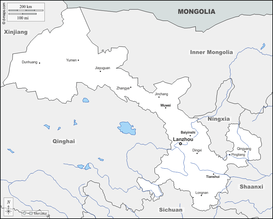 d-maps > एशिया > चीनी जनवादी गणराज्य > गांसु > सीमाओं, जल-सर्वेक्षण, मुख्य शहरों, नाम