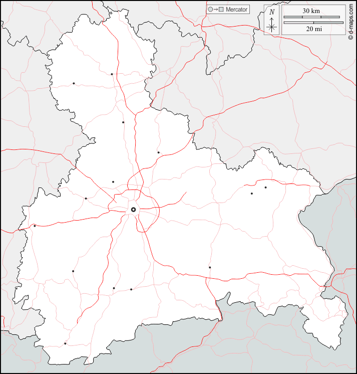d-maps > यूरोप > जर्मनी > ऊपरी बवेरिया जिला > सीमाओं, मुख्य शहरों, सड़कों