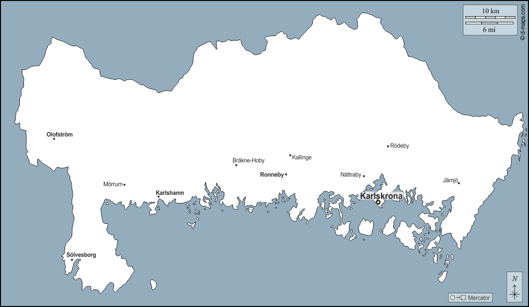 d-maps > यूरोप > स्वीडन > ब्लेकिंग > बाह्यरेखा, मुख्य शहरों, नाम