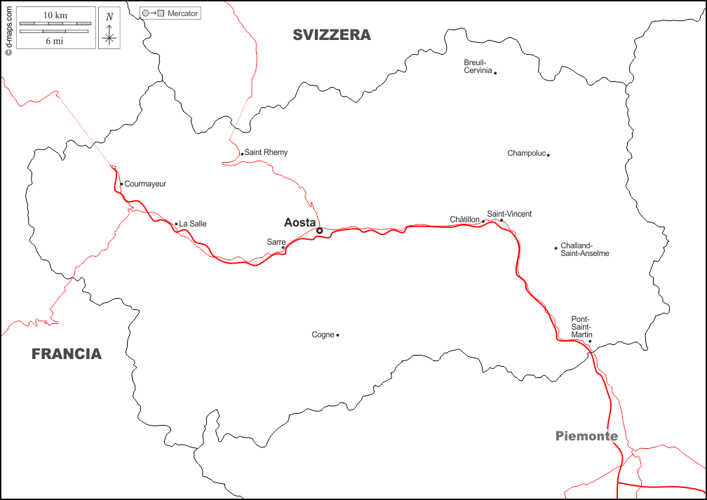 d-maps > यूरोप > इटली > आओस्ता घाटी > सीमाओं, मुख्य शहरों, सड़कों, नाम, सफेद