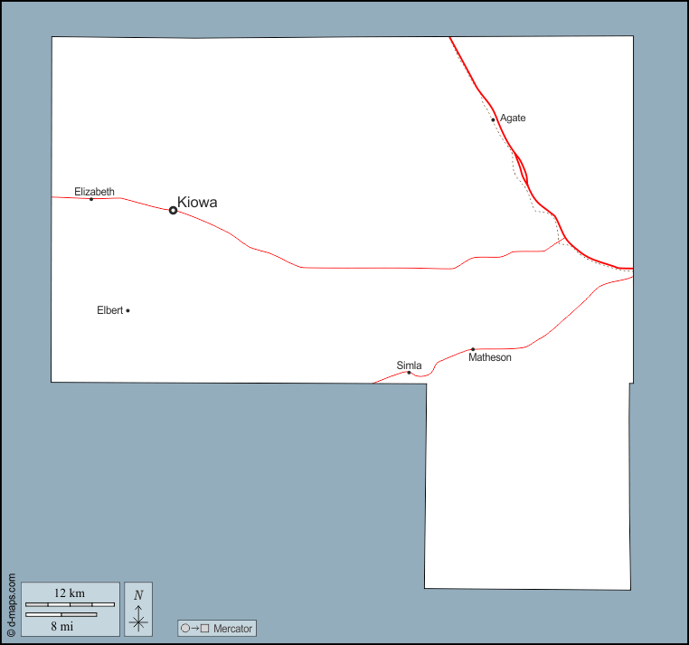 d-maps > संयुक्त राज्य > कोलोराडो > एल्बर्ट काउंटी > बाह्यरेखा, मुख्य शहरों, सड़कों, नाम
