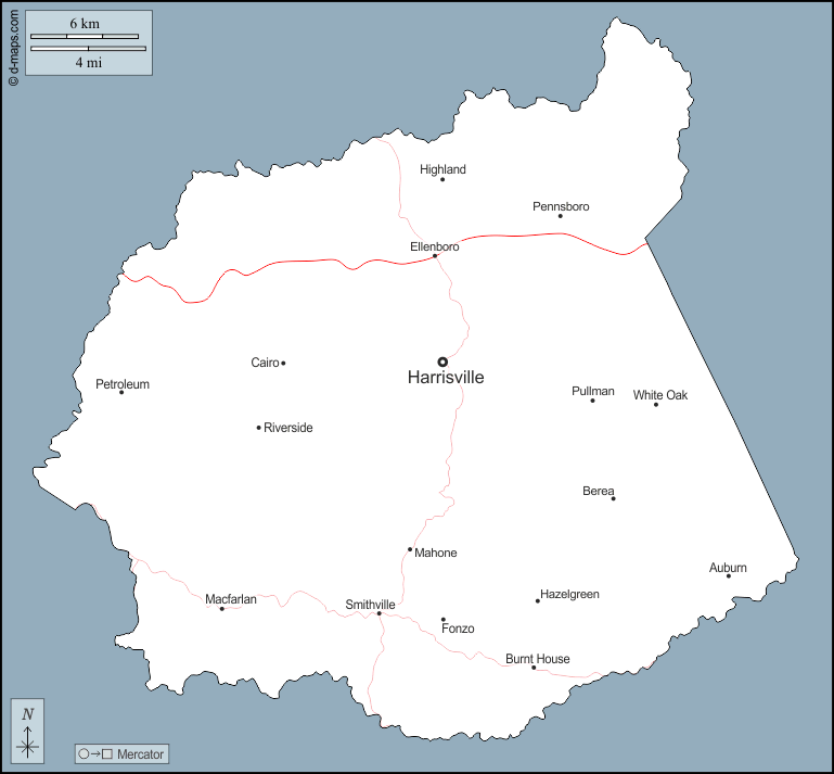 d-maps > संयुक्त राज्य > वेस्ट वर्जीनिया > रिची काउंटी > बाह्यरेखा, मुख्य शहरों, सड़कों, नाम