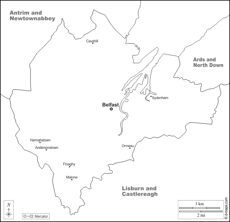 d-maps > यूरोप > युनाइटेड किंगडम > बेलफास्ट > सीमाओं, मुख्य शहरों, नाम, सफेद