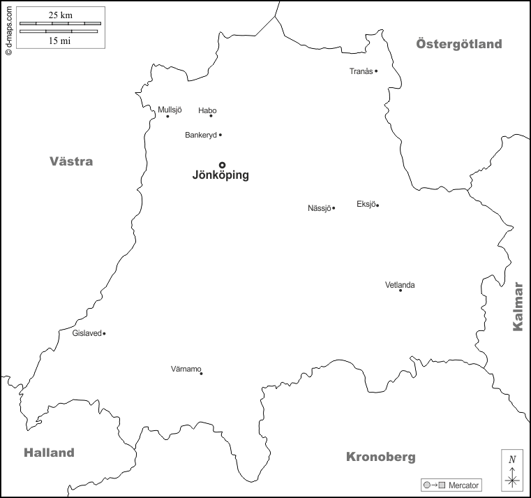 d-maps > यूरोप > स्वीडन > जोंकोपिंग > सीमाओं, मुख्य शहरों, नाम, सफेद
