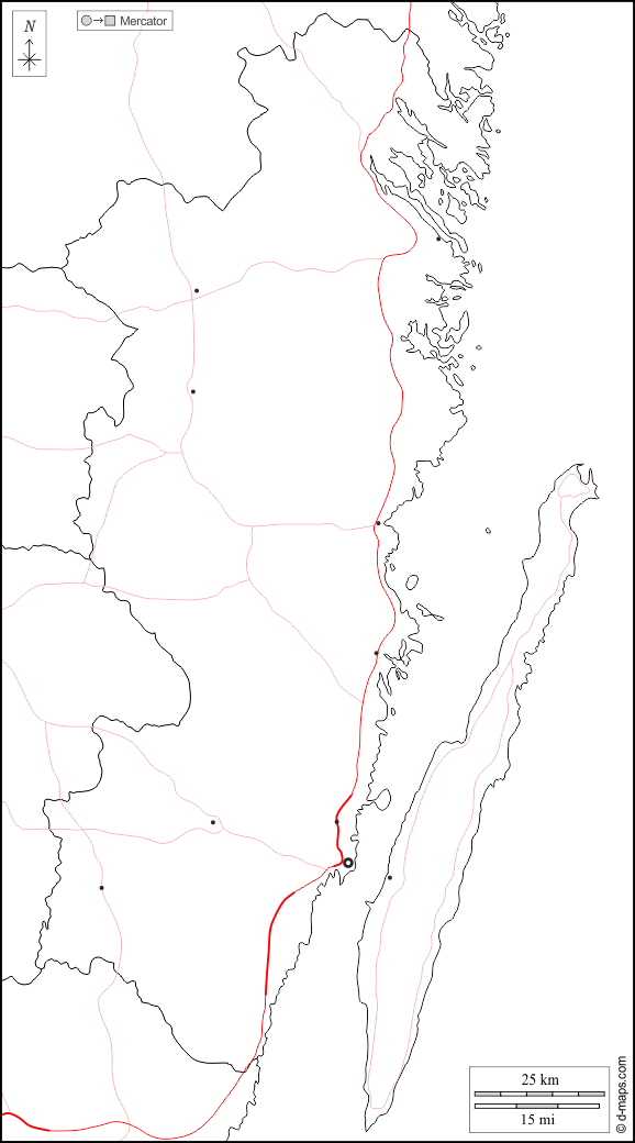 d-maps > यूरोप > स्वीडन > काल्मार > सीमाओं, मुख्य शहरों, सड़कों, सफेद
