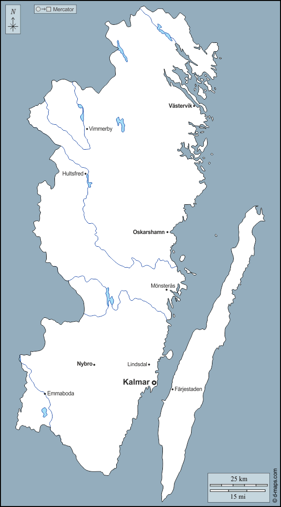 d-maps > यूरोप > स्वीडन > काल्मार > बाह्यरेखा, जल-सर्वेक्षण, मुख्य शहरों, नाम