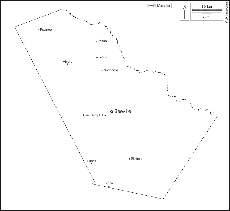 d-maps > संयुक्त राज्य > टेक्सास > बी काउंटी > बाह्यरेखा, मुख्य शहरों, नाम, सफेद