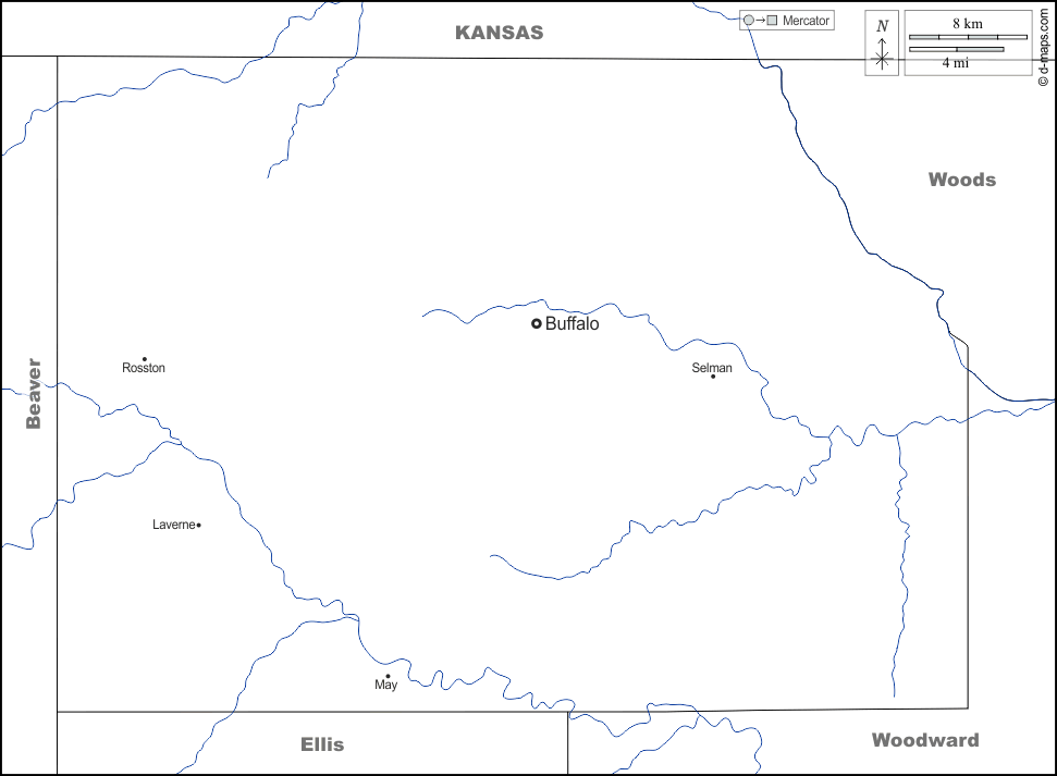 d-maps > संयुक्त राज्य > ओकलाहोमा > हार्पर काउंटी > सीमाओं, जल-सर्वेक्षण, मुख्य शहरों, नाम, सफेद