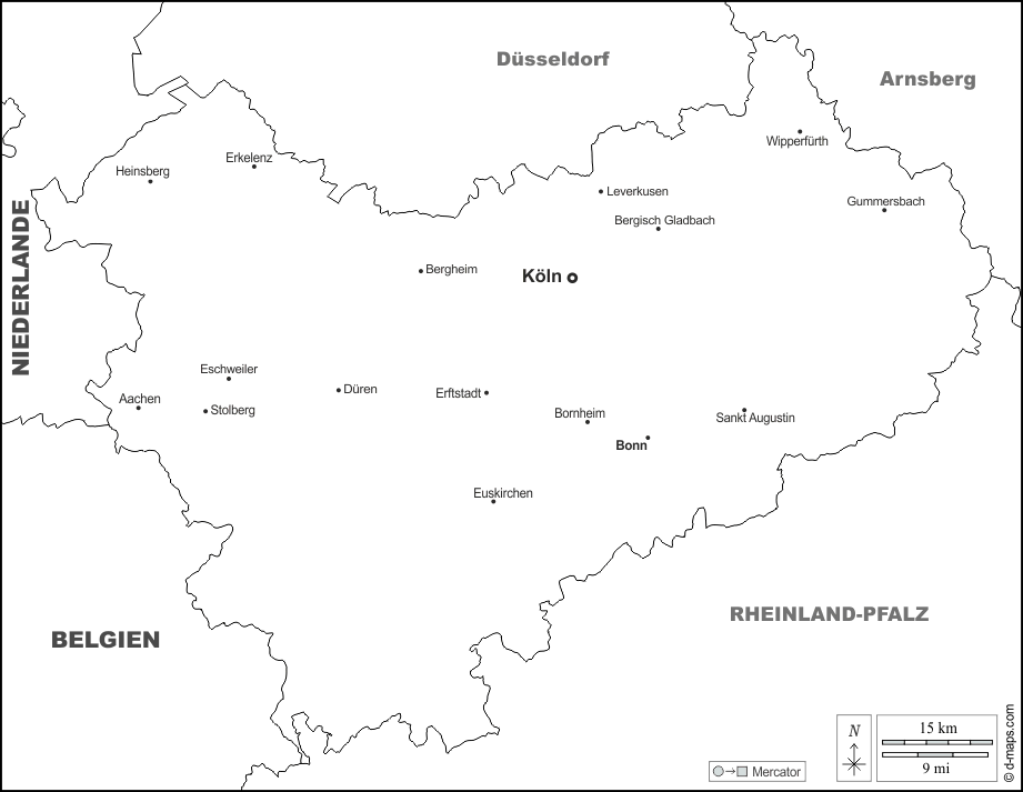 d-maps > यूरोप > जर्मनी > कोलोन प्रशासनिक जिला > सीमाओं, मुख्य शहरों, नाम, सफेद
