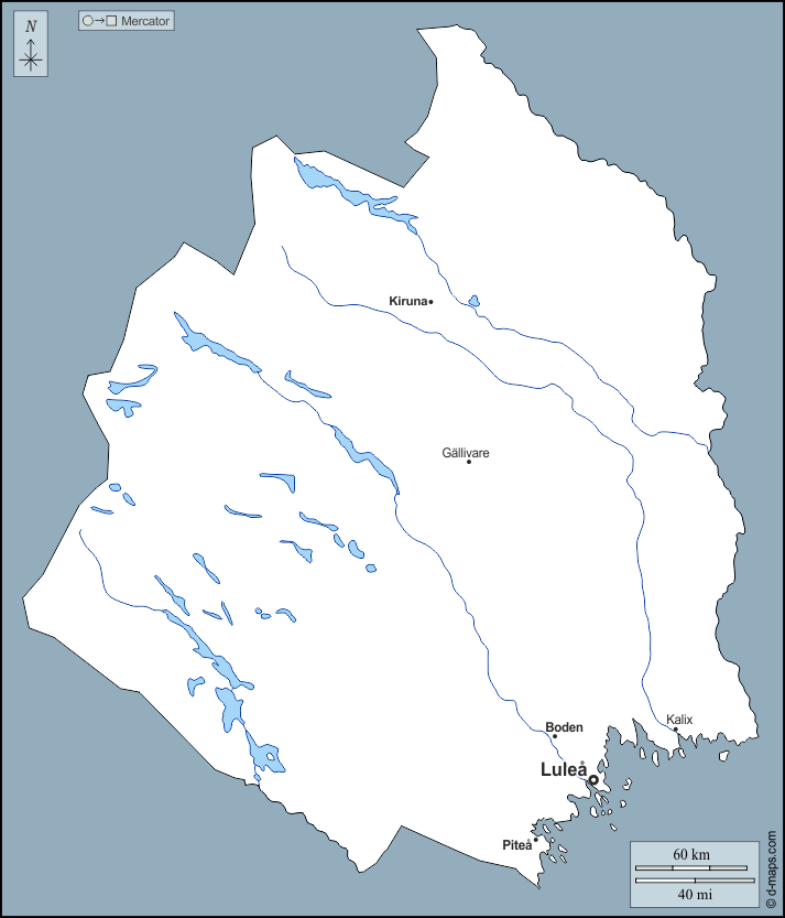 d-maps > यूरोप > स्वीडन > नॉरबॉटेन > बाह्यरेखा, जल-सर्वेक्षण, मुख्य शहरों, नाम
