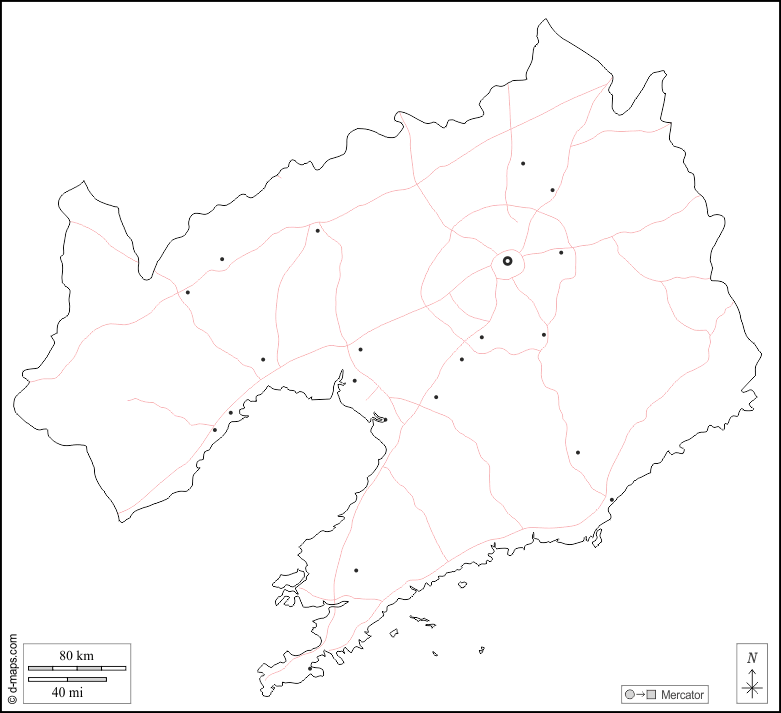 d-maps > एशिया > चीनी जनवादी गणराज्य > लियाओनिंग > बाह्यरेखा, मुख्य शहरों, सड़कों, सफेद