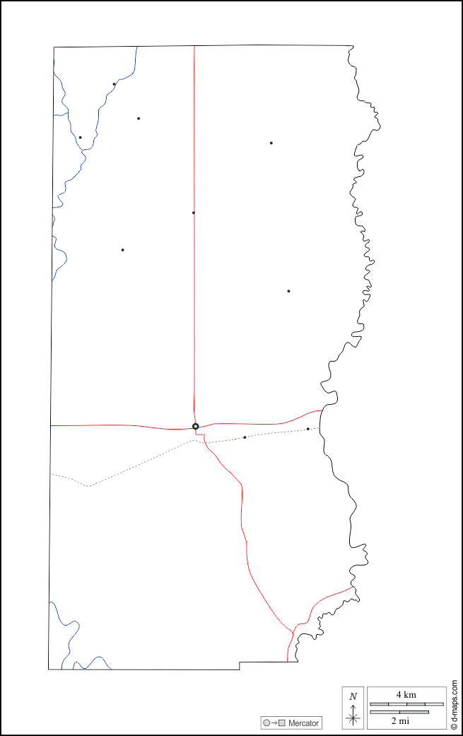 d-maps > संयुक्त राज्य > इलिनॉय > एडवर्ड्स काउंटी > बाह्यरेखा, जल-सर्वेक्षण, मुख्य शहरों, सड़कों, सफेद