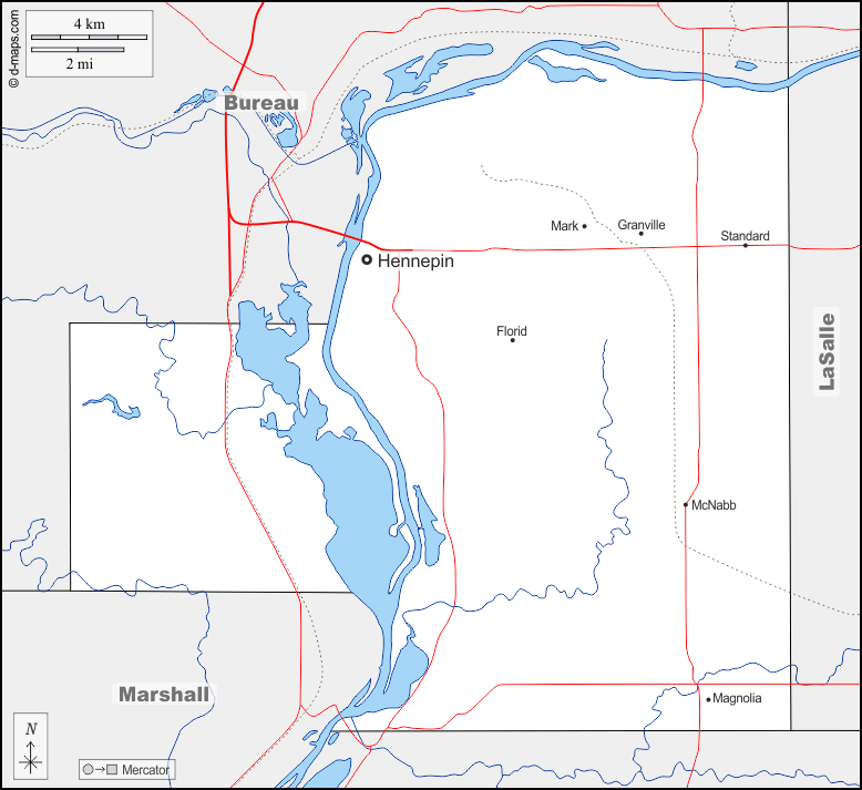 d-maps > संयुक्त राज्य > इलिनॉय > पुतनाम काउंटी > सीमाओं, जल-सर्वेक्षण, मुख्य शहरों, सड़कों, नाम