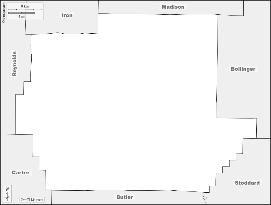 d-maps > संयुक्त राज्य > मिज़ूरी > वेन काउंटी > सीमाओं, नाम