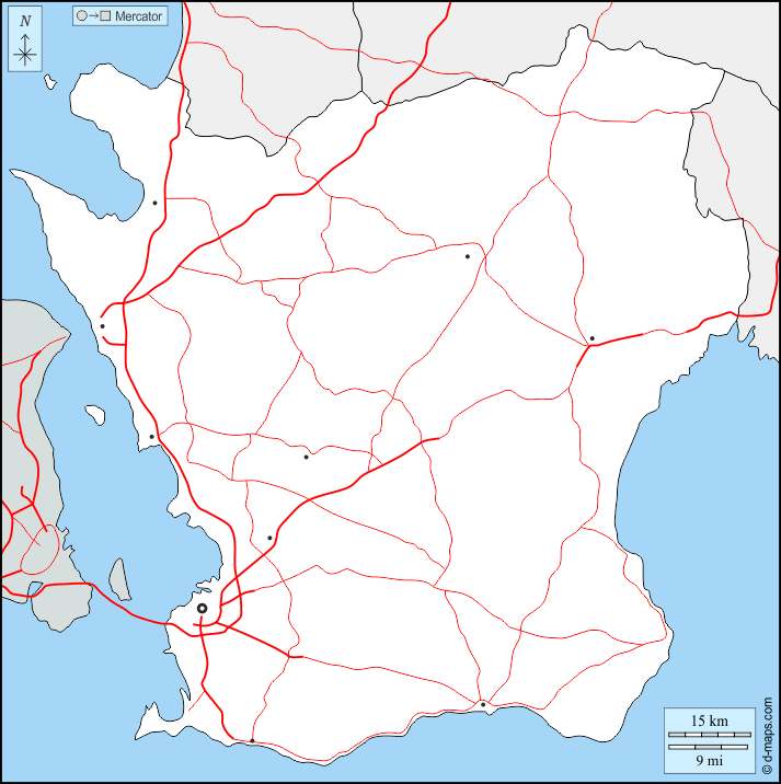d-maps > यूरोप > स्वीडन > स्कैनिया > सीमाओं, मुख्य शहरों, सड़कों
