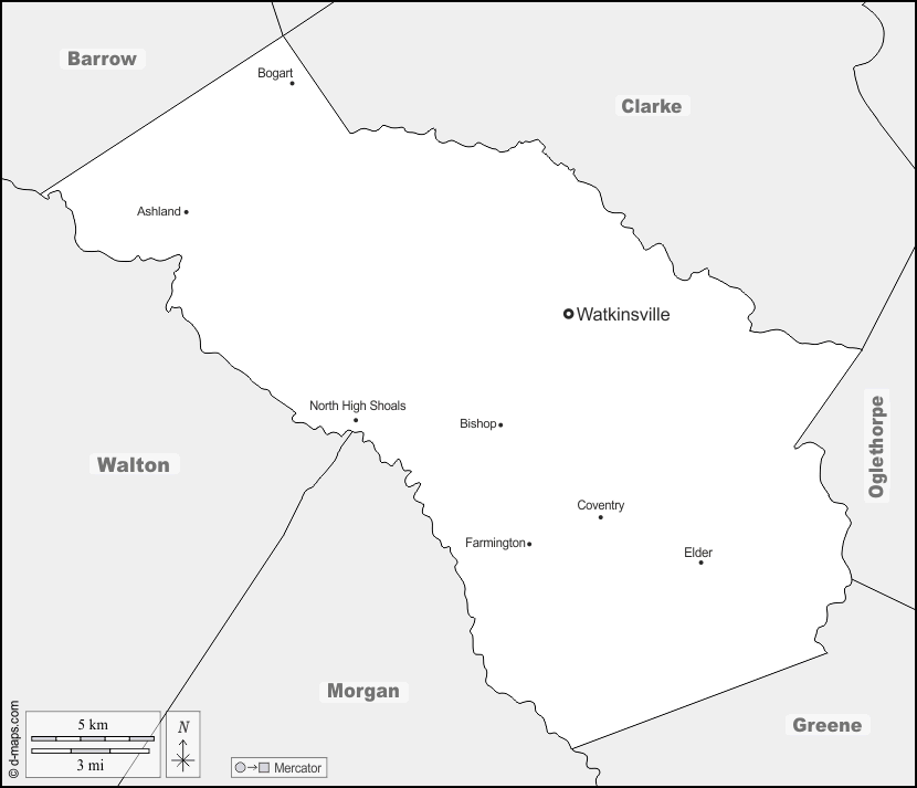 d-maps > संयुक्त राज्य > जॉर्जिया > ओकोनी काउंटी > सीमाओं, मुख्य शहरों, नाम