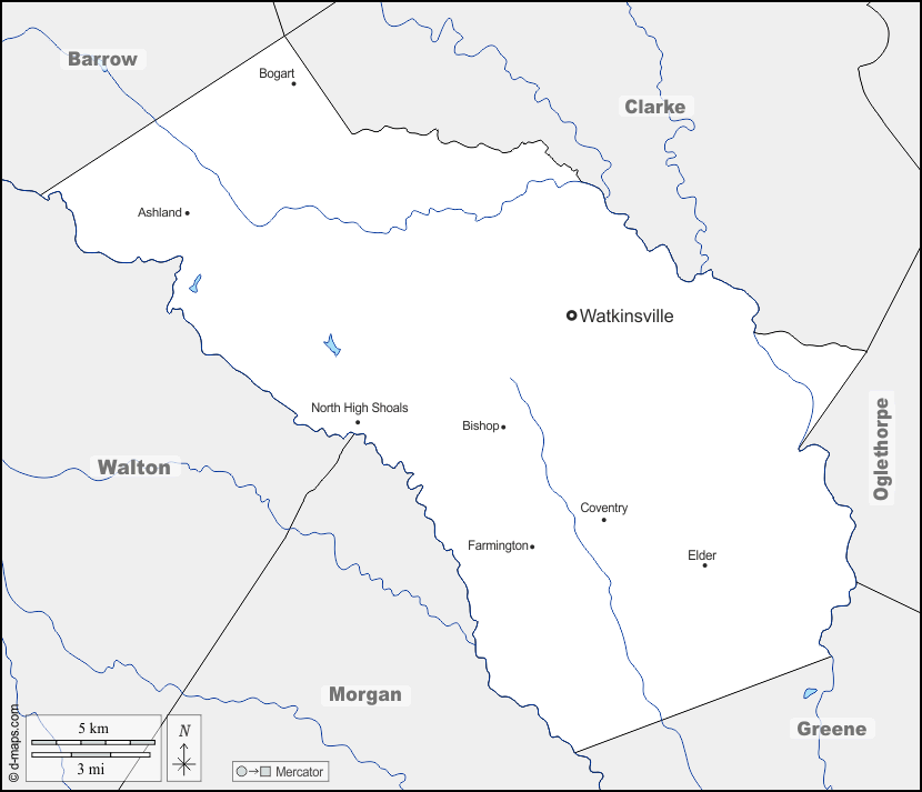 d-maps > संयुक्त राज्य > जॉर्जिया > ओकोनी काउंटी > सीमाओं, जल-सर्वेक्षण, मुख्य शहरों, नाम