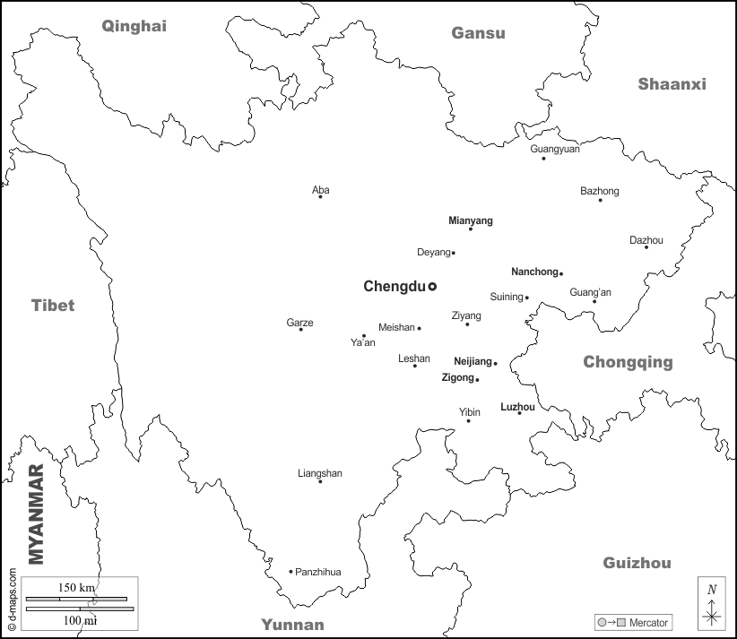d-maps > एशिया > चीनी जनवादी गणराज्य > सिचुआन > सीमाओं, मुख्य शहरों, नाम, सफेद
