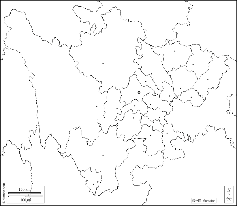 d-maps > एशिया > चीनी जनवादी गणराज्य > सिचुआन > सीमाओं, जनपदों, मुख्य शहरों, सफेद