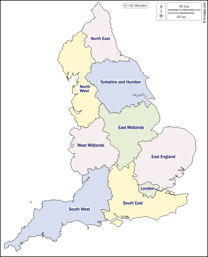 d-maps > यूरोप > युनाइटेड किंगडम > इंग्लैंड > बाह्यरेखा, क्षेत्रों, नाम, रंग, सफेद