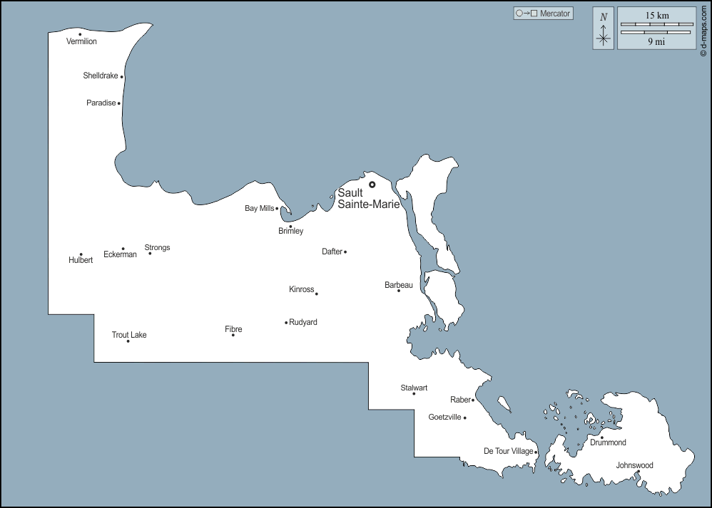 d-maps > संयुक्त राज्य > मिशिगन > चिप्पवे काउंटी > बाह्यरेखा, मुख्य शहरों, नाम