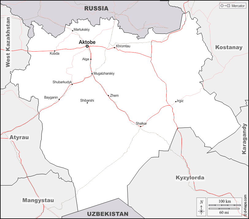 d-maps > एशिया > कज़ाकस्तान > अक्तोबे > सीमाओं, मुख्य शहरों, सड़कों, नाम