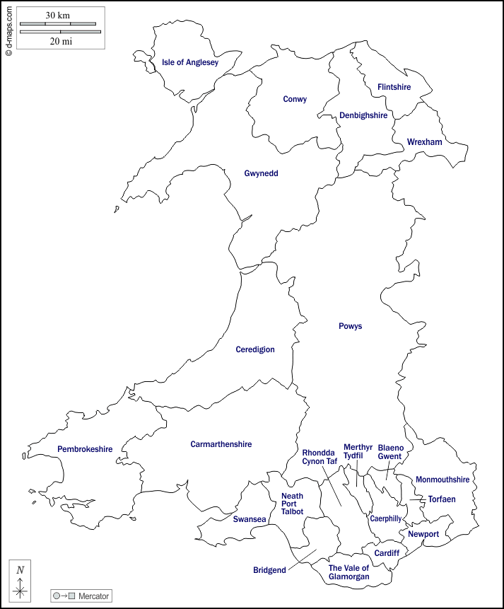 d-maps > यूरोप > युनाइटेड किंगडम > वेल्स > बाह्यरेखा, क्षेत्र, नाम, सफेद