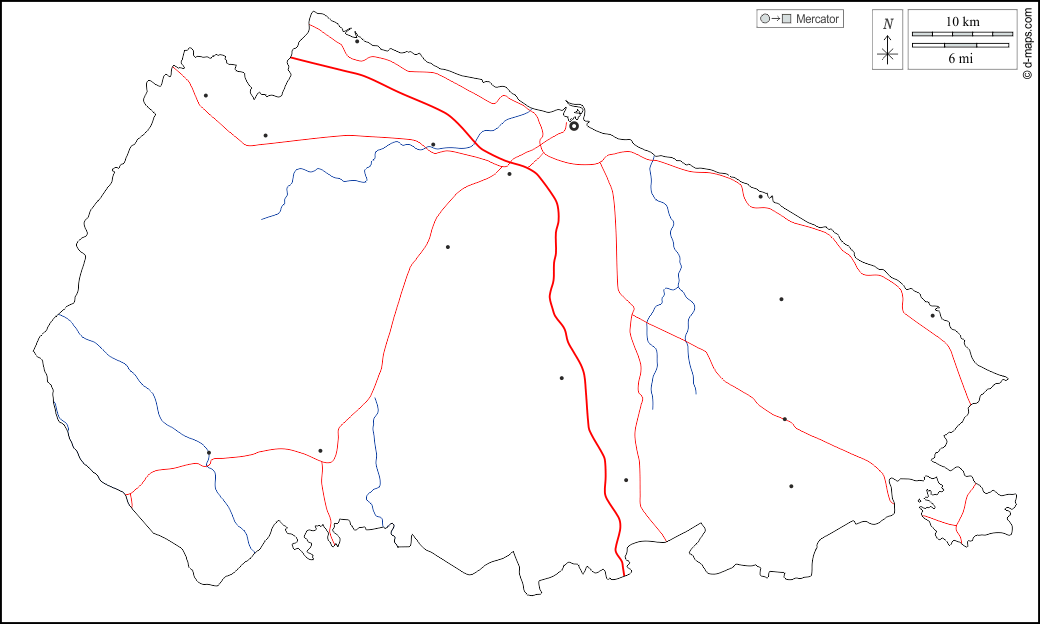 d-maps > यूरोप > इटली > बारी > बाह्यरेखा, जल-सर्वेक्षण, मुख्य शहरों, सड़कों, सफेद