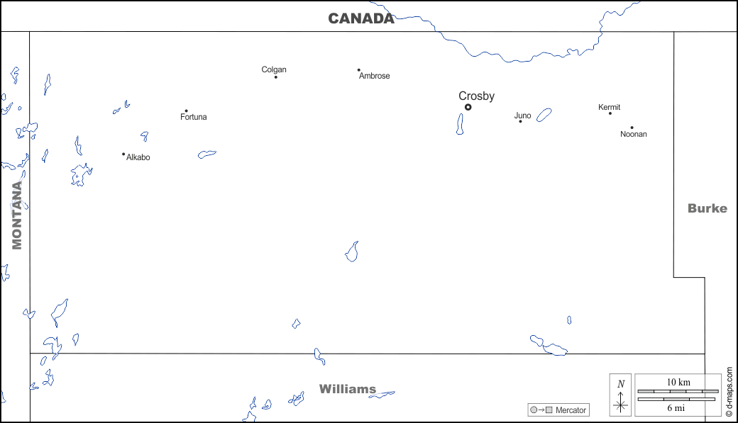 d-maps > संयुक्त राज्य > नॉर्थ डकोटा > डिवाइड काउंटी > सीमाओं, जल-सर्वेक्षण, मुख्य शहरों, नाम, सफेद