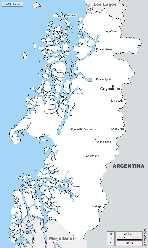 d-maps > महाअमेरिका > चिली > एसेन > सीमाओं, मुख्य शहरों, नाम