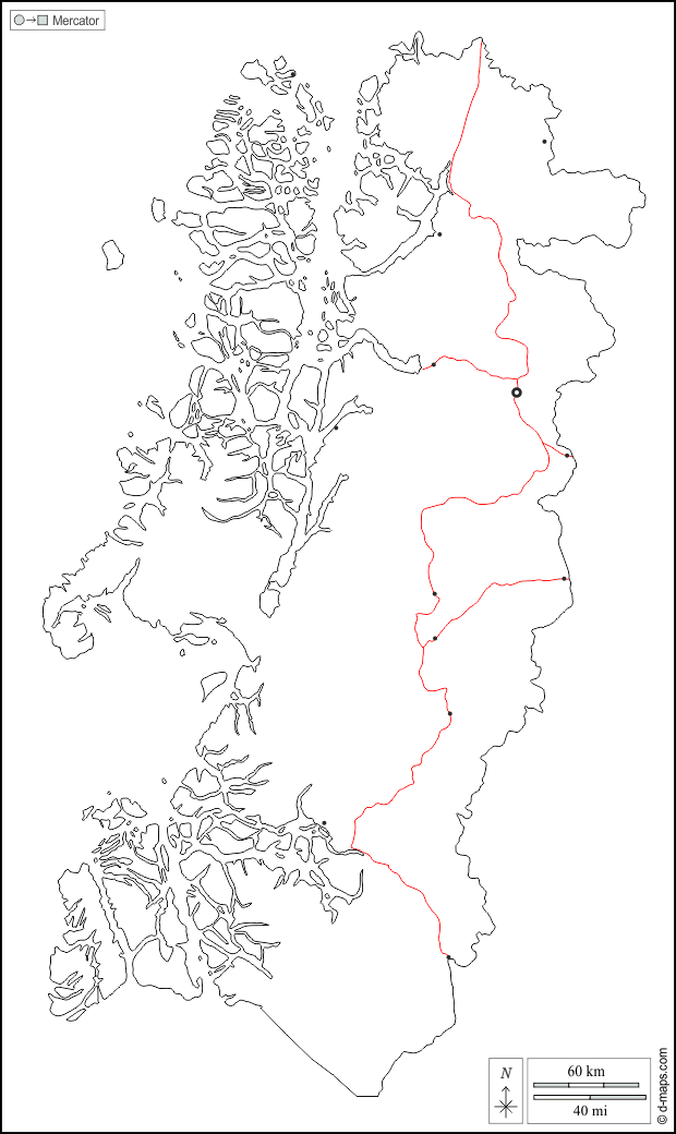 d-maps > महाअमेरिका > चिली > एसेन > बाह्यरेखा, मुख्य शहरों, सड़कों, सफेद
