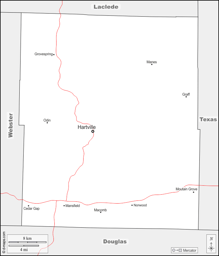 d-maps > संयुक्त राज्य > मिज़ूरी > राइट काउंटी > सीमाओं, मुख्य शहरों, सड़कों, नाम