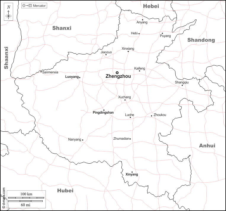 d-maps > एशिया > चीनी जनवादी गणराज्य > हेनान > सीमाओं, मुख्य शहरों, सड़कों, नाम, सफेद