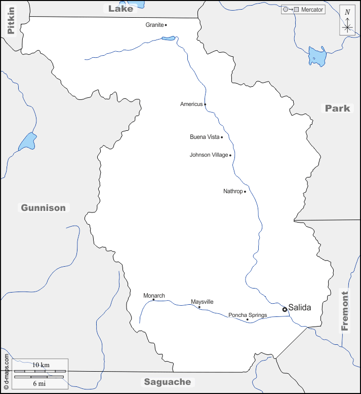 d-maps > संयुक्त राज्य > कोलोराडो > चाफ़ी काउंटी > सीमाओं, जल-सर्वेक्षण, मुख्य शहरों, नाम