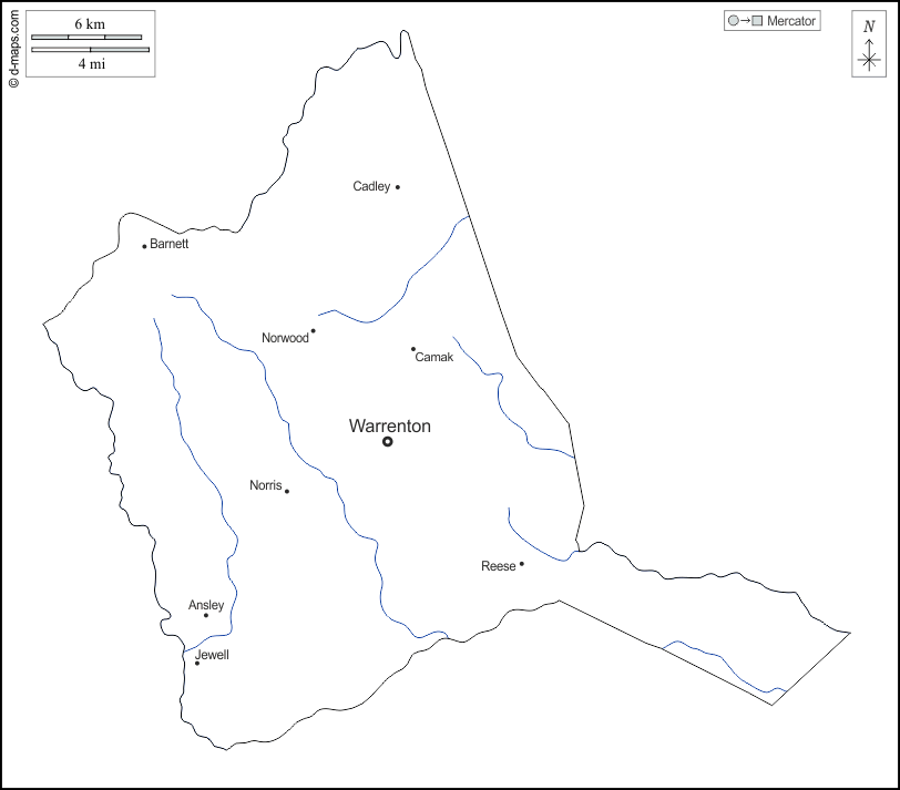 d-maps > संयुक्त राज्य > जॉर्जिया > वॉरेन काउंटी > बाह्यरेखा, जल-सर्वेक्षण, मुख्य शहरों, नाम, सफेद