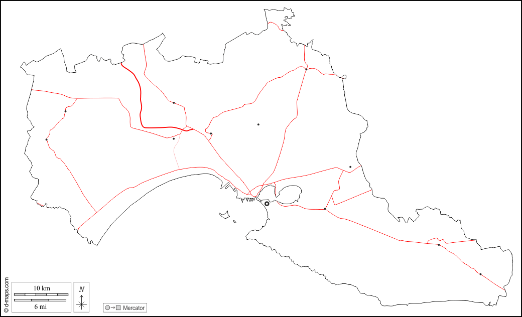 d-maps > यूरोप > इटली > टारंटो > बाह्यरेखा, मुख्य शहरों, सड़कों, सफेद