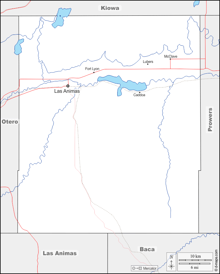 d-maps > संयुक्त राज्य > कोलोराडो > बेंट काउंटी > सीमाओं, जल-सर्वेक्षण, मुख्य शहरों, सड़कों, नाम