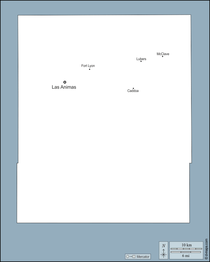 d-maps > संयुक्त राज्य > कोलोराडो > बेंट काउंटी > बाह्यरेखा, मुख्य शहरों, नाम
