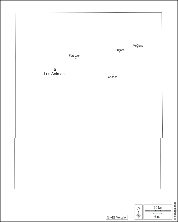 d-maps > संयुक्त राज्य > कोलोराडो > बेंट काउंटी > बाह्यरेखा, मुख्य शहरों, नाम, सफेद