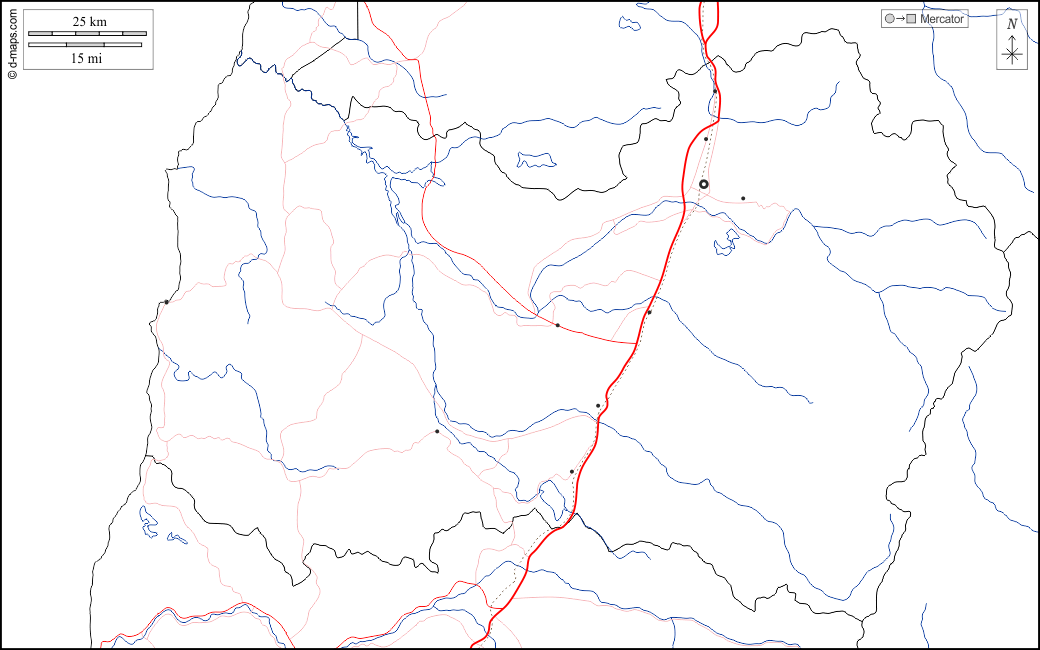 d-maps > महाअमेरिका > चिली > ओ'हिगिन > सीमाओं, जल-सर्वेक्षण, मुख्य शहरों, सड़कों, सफेद