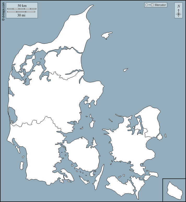 d-maps > यूरोप > डेनमार्क > डेनमार्क > बाह्यरेखा, क्षेत्रों