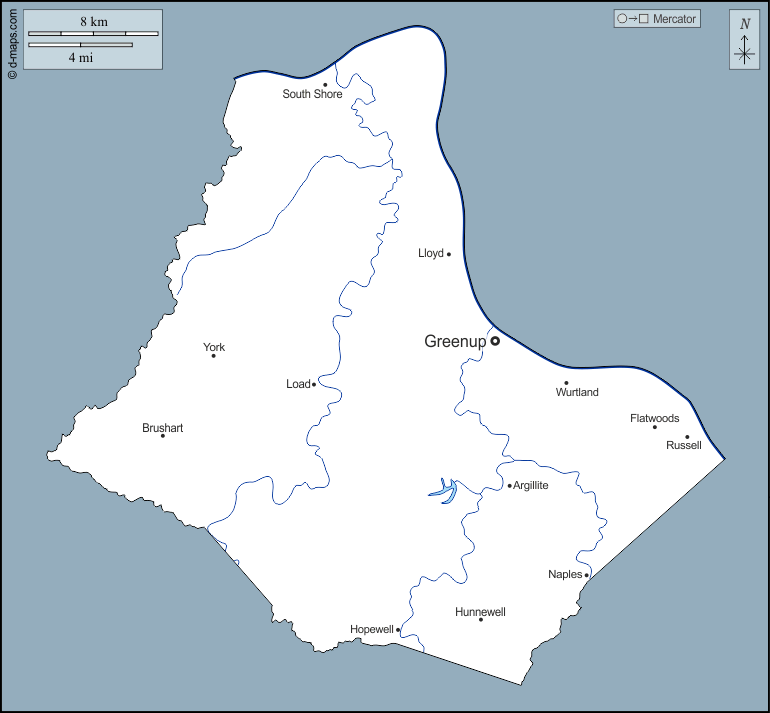 d-maps > संयुक्त राज्य > केंटुकी > ग्रीनवप काउंटी > बाह्यरेखा, जल-सर्वेक्षण, मुख्य शहरों, नाम