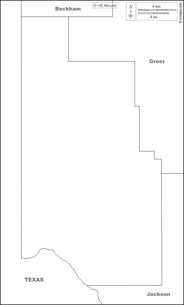 d-maps > संयुक्त राज्य > ओकलाहोमा > हार्मन काउंटी > सीमाओं, नाम, सफेद