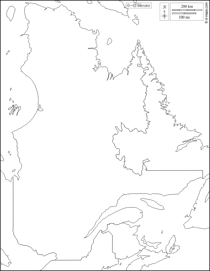 d-maps > महाअमेरिका > कनाडा > क्यूबेक > सीमाओं, सफेद