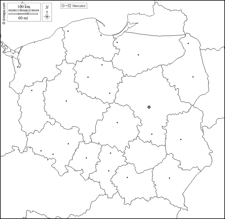 d-maps > यूरोप > पोलैंड > पोलैंड > सीमाओं, क्षेत्रों, मुख्य शहरों, सफेद