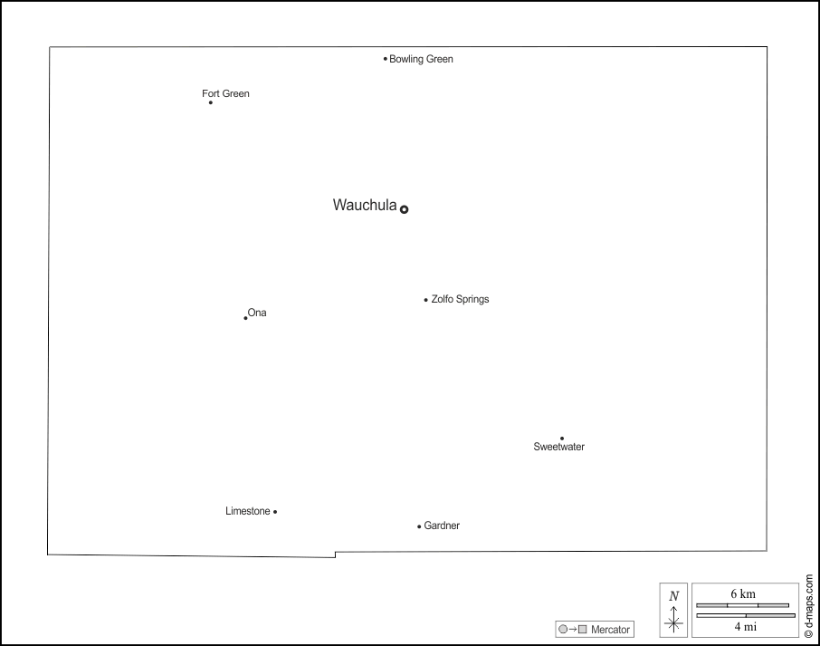d-maps > संयुक्त राज्य > फ्लोरिडा > हार्डी काउंटी > बाह्यरेखा, मुख्य शहरों, नाम, सफेद