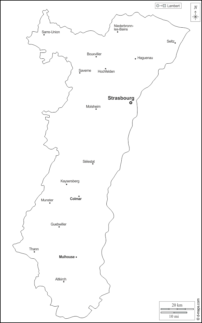 d-maps > यूरोप > फ़्रान्स > अलसैस > बाह्यरेखा, मुख्य शहरों, नाम, सफेद
