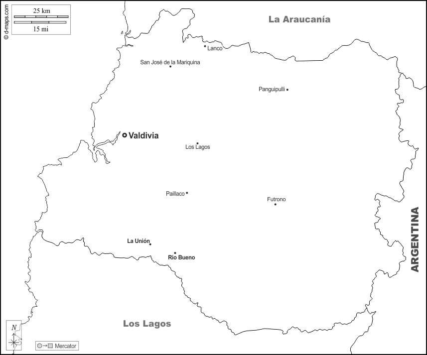 d-maps > महाअमेरिका > चिली > लॉस रिओस > सीमाओं, मुख्य शहरों, नाम, सफेद