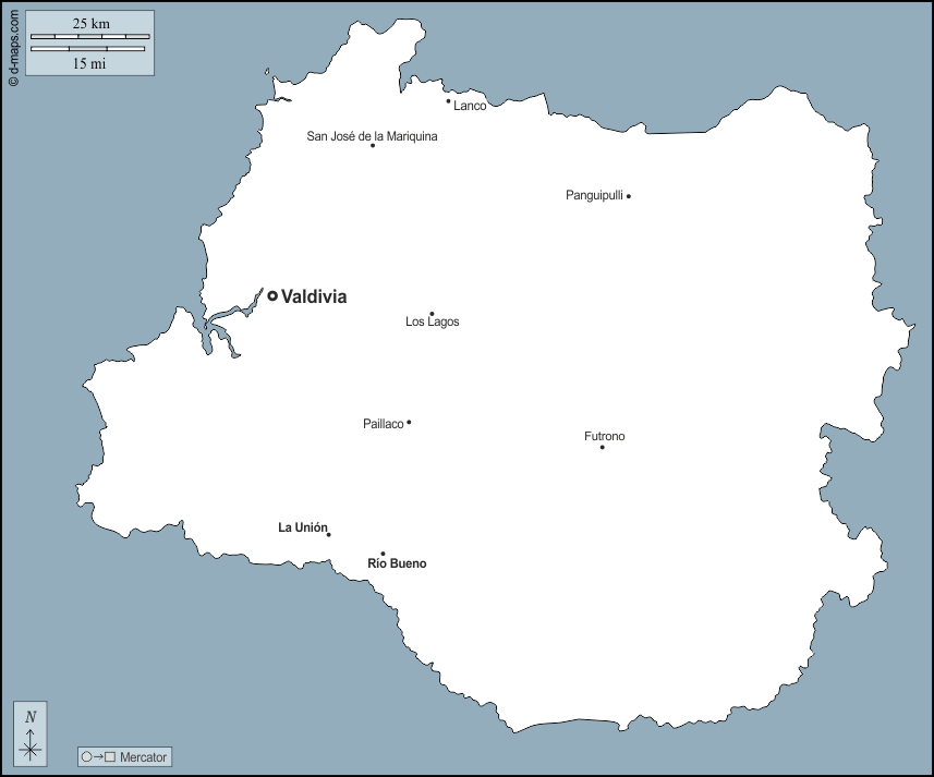 d-maps > महाअमेरिका > चिली > लॉस रिओस > बाह्यरेखा, मुख्य शहरों, नाम